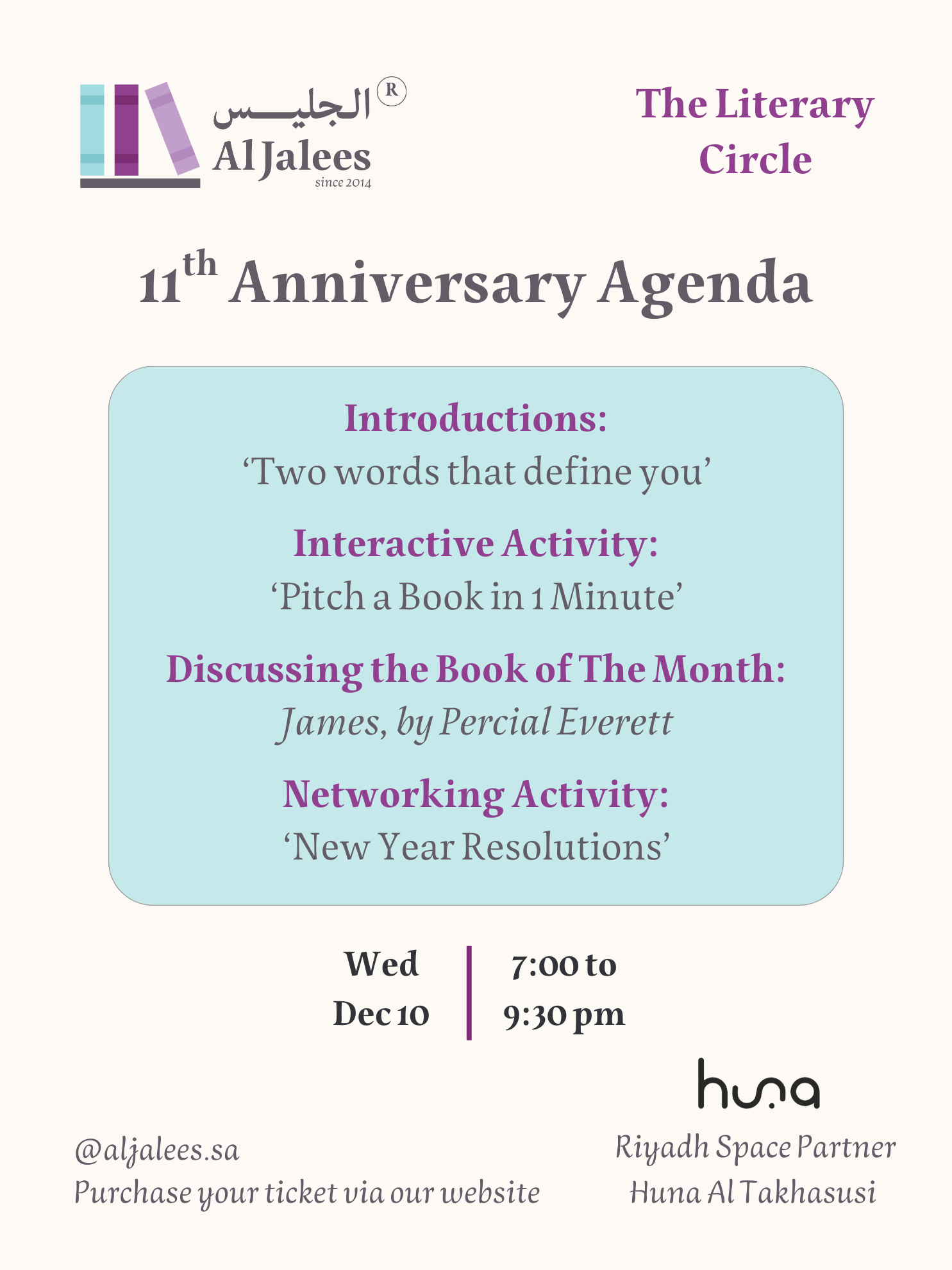 As we look toward 2026, our plans are bigger, bolder, and more creative than ever. I truly hope you stay with us, join the story, and be part of everything we’re dreaming about. This year in Riyadh, we’re marking our anniversary with literary games, community bonding, and a discussion of James by Percival Everett—a novel that took the literary world by storm in 2024.